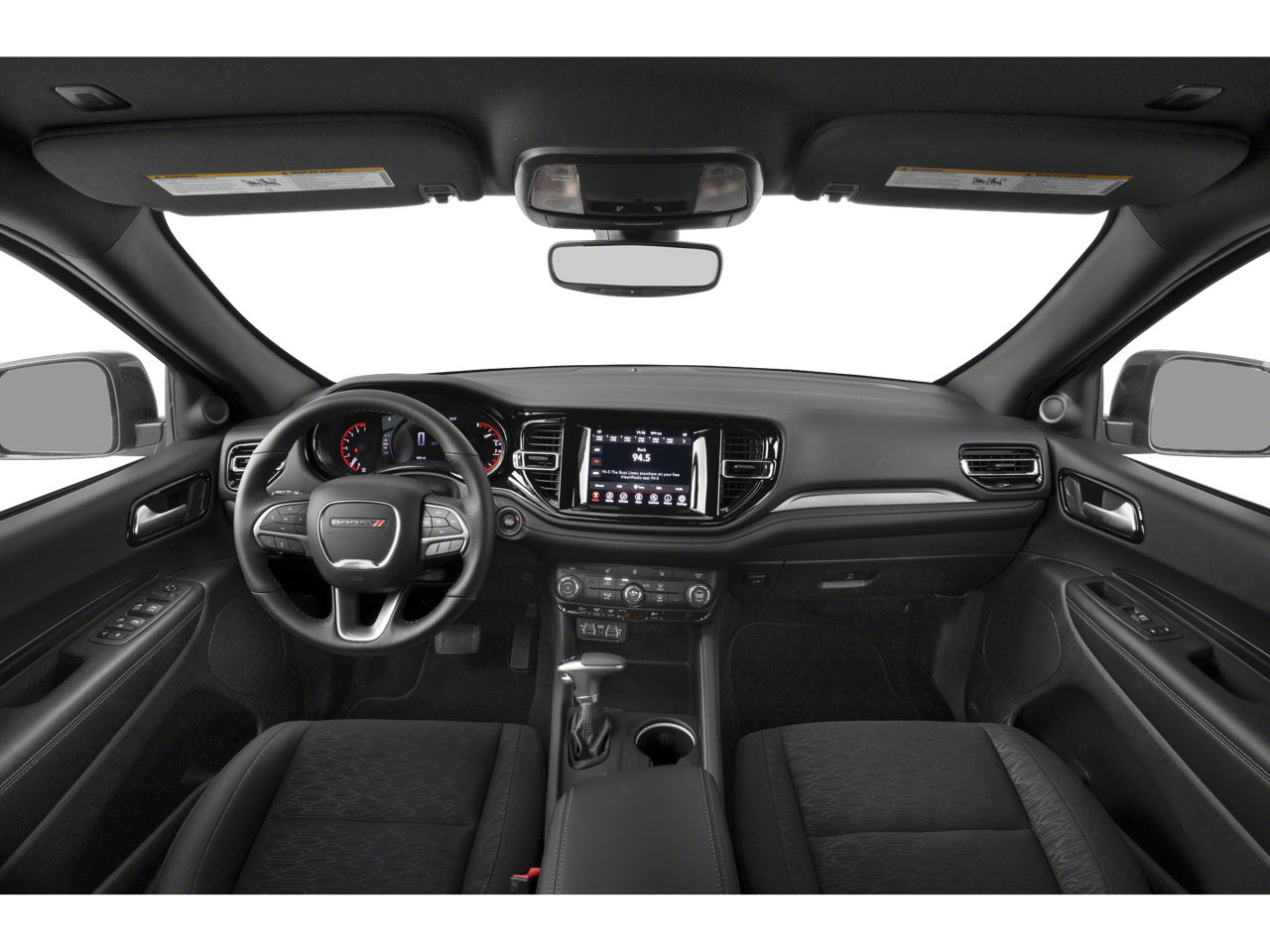 This Dodge Durango is equipped with the following features: Blacktop Package (Black Roof Rails, Gloss Black Badges, Gloss Black Exterior Mirrors, GT Gloss Black Badging, Integrated Roof Rail Crossbars, Satin Black Dodge Tail Lamp Badge, and Wheels: 20 x 8 Black Noise Aluminum), Quick Order Package 2BD GT, 18 x 8 Painted Aluminum Wheels, 3.27 Rear Axle Ratio, 3rd row seats: split-bench, 4-Wheel Disc Brakes, 6 Speakers, ABS brakes, Air Conditioning, Alloy wheels, AM/FM radio: SiriusXM w/360L, Apple CarPlay/Android Auto, Auto-dimming Rear-View mirror, Auto-leveling suspension, Automatic temperature control, Brake assist, Bumpers: body-color, Cloth Bucket Seats with Shift Insert, Compass, Delay-off headlights, Driver door bin, Driver vanity mirror, Dual front impact airbags, Dual front side impact airbags, Electronic Stability Control, Emergency communication system: Dodge Connect, Four wheel independent suspension, Front anti-roll bar, Front Bucket Seats, Front Center Armrest w/Storage, Front dual zone A/C, Front reading lights, Fully automatic headlights, Garage door transmitter, Heated door mirrors, Heated front seats, Heated steering wheel, Illuminated entry, Knee airbag, Leather steering wheel, Low tire pressure warning, Navigation System, Occupant sensing airbag, Outside temperature display, Overhead airbag, Overhead console, Panic alarm, ParkView Rear Back-Up Camera, Passenger door bin, Passenger vanity mirror, Power door mirrors, Power driver seat, Power Liftgate, Power steering, Power windows, Radio data system, Radio: Uconnect 5 Nav with 10.1 Display, Rear air conditioning, Rear anti-roll bar, Rear Load Leveling Suspension, Rear reading lights, Rear seat center armrest, Rear window defroster, Rear window wiper, Remote keyless entry, Speed control, Speed-sensing steering, Speed-Sensitive Wipers, Split folding rear seat, Spoiler, Sport steering wheel, Steering wheel mounted audio controls, Tachometer, Telescoping steering wheel, Tilt steering wheel, Traction control, Trip computer, Variably intermittent wipers, and Voltmeter.
