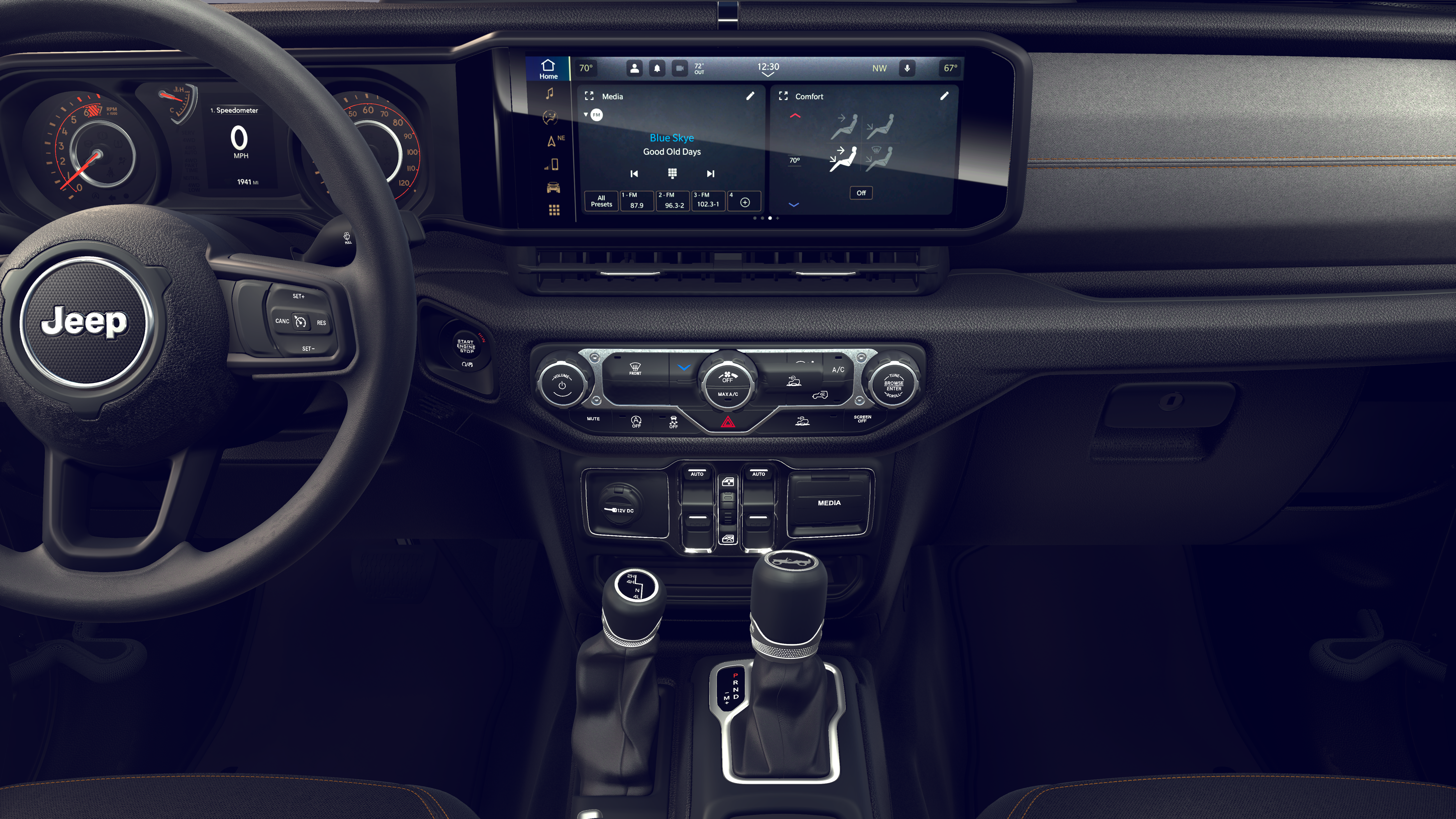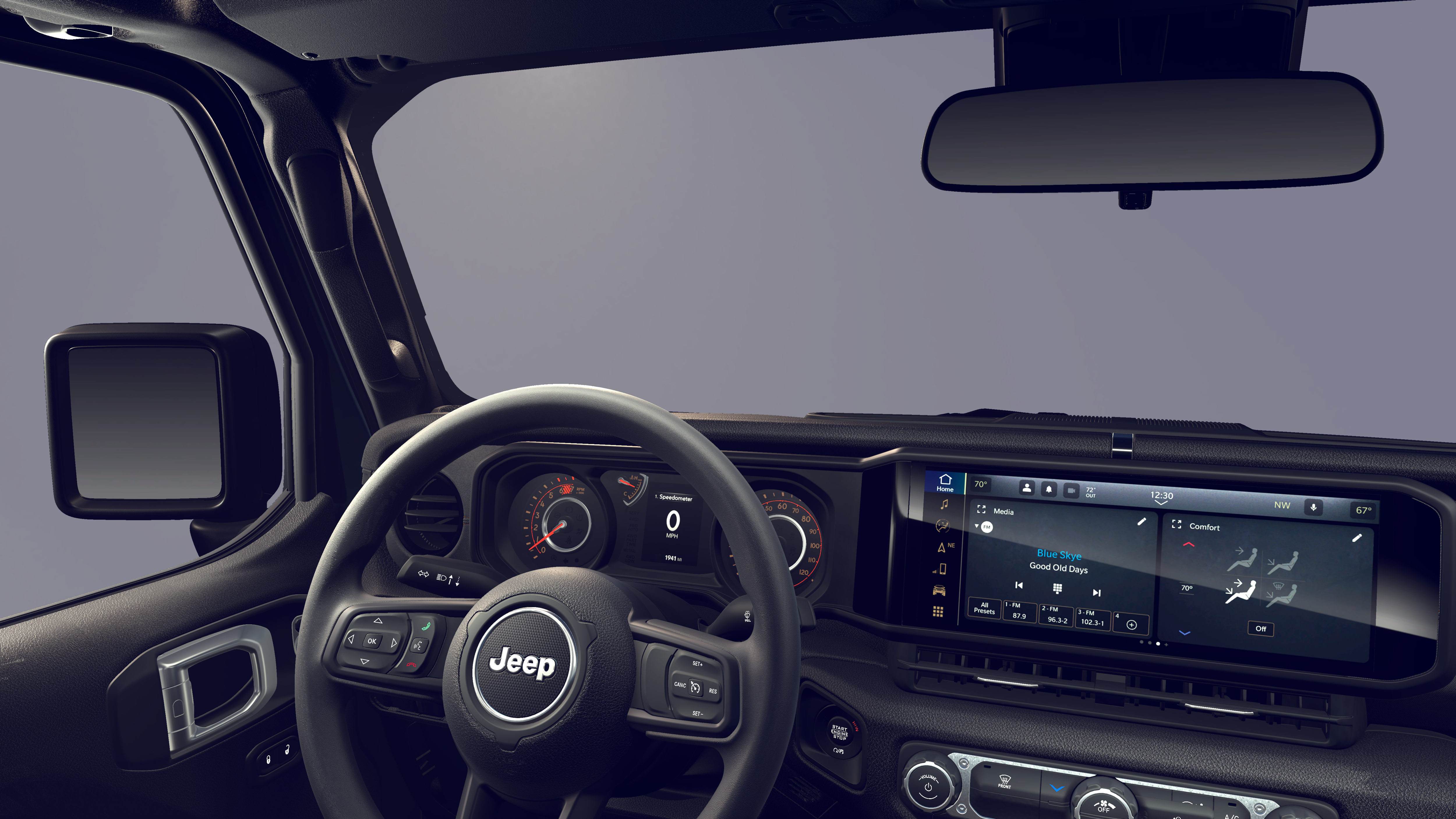 This Jeep Wrangler is equipped with the following features: Quick Order Package 22B Sport, 12.3 Touchscreen Display, 3.45 Overall Top Gear Ratio, 4-Wheel Disc Brakes, 4G LTE Wi-Fi Hot Spot, 8 Speakers, ABS brakes, Air Conditioning, AM/FM radio: SiriusXM with 360L, Apple CarPlay, Apple CarPlay/Android Auto, Aux Battery, Brake assist, Compass, Connectivity - US/Canada, Delay-off headlights, Driver door bin, Driver vanity mirror, Dual front impact airbags, Dual front side impact airbags, Electronic Stability Control, For More Info, Call 800-643-2112, Front anti-roll bar, Front Bucket Seats, Front Center Armrest w/Storage, Front fog lights, Front reading lights, Google Android Auto, Illuminated entry, Integrated Center Stack Radio, Integrated roll-over protection, Low tire pressure warning, Myflexcare Service Plan, Non-Lock Fuel Cap Without Discriminator, Normal Duty Suspension, Occupant sensing airbag, Outside temperature display, Overhead airbag, Panic alarm, ParkView Rear Back-Up Camera, Passenger door bin, Passenger vanity mirror, Power steering, Power windows, Radio data system, Radio: Uconnect 5 with 12.3 Display, Rear anti-roll bar, Rear reading lights, Remote keyless entry, SiriusXM Radio Service, SiriusXM with 360L, Speed control, Split folding rear seat, Steering wheel mounted audio controls, Stop-Start Dual Battery System, Tachometer, Telescoping steering wheel, Tilt steering wheel, Traction control, Trip computer, Variably intermittent wipers, and Wheels: 17 x 7.5 Black Steel Styled. Recent Arrival!