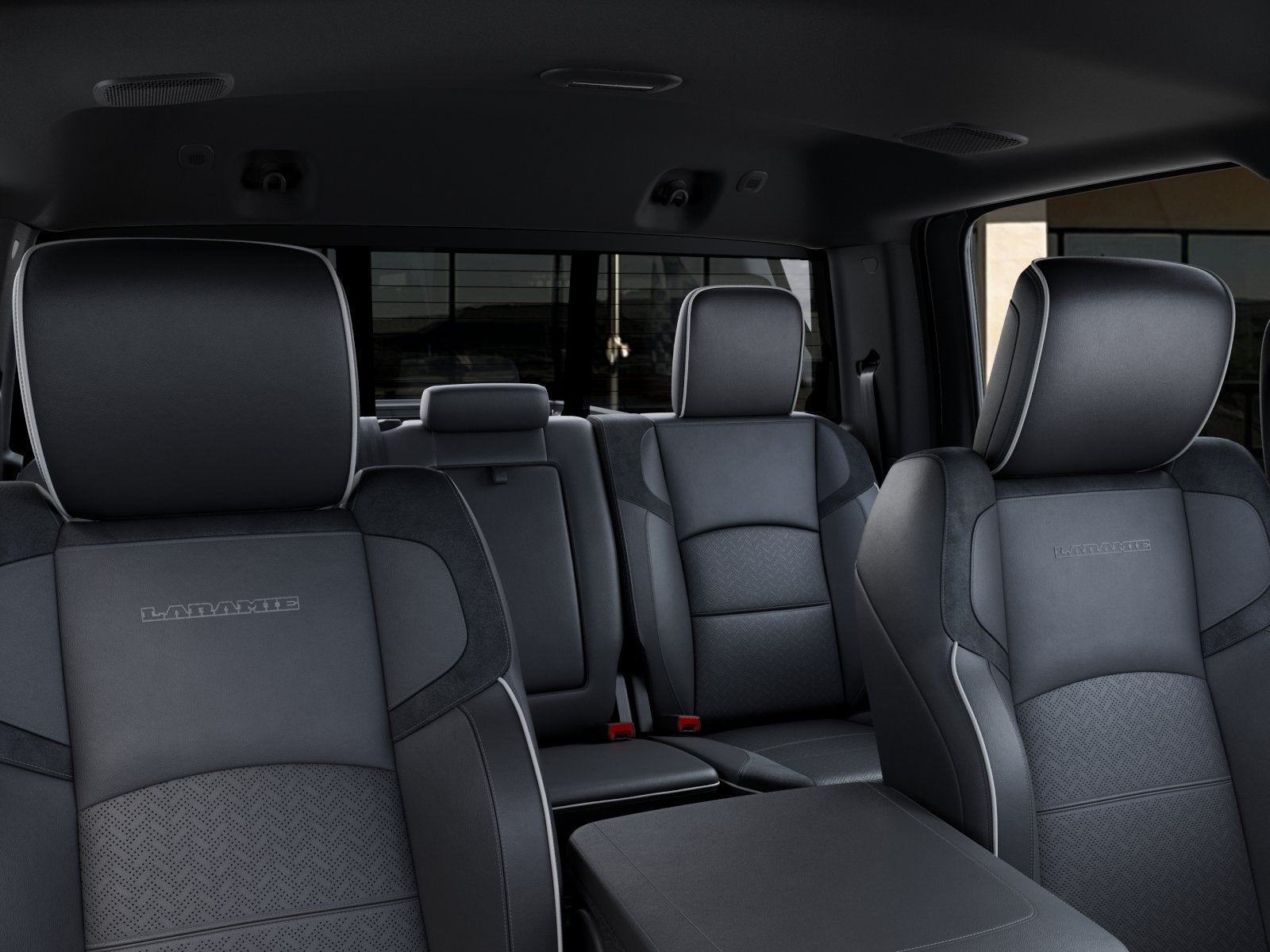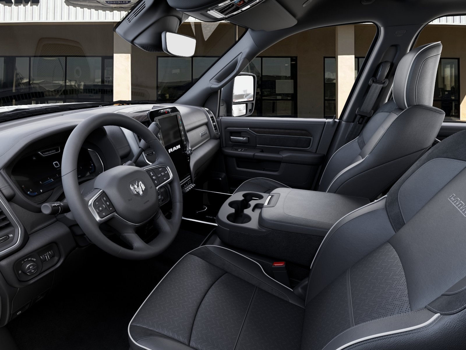 This Ram 2500 is equipped with the following features: Laramie Level 1 Equipment Group (2nd Row in Floor Storage Bins, Anti-Spin Differential Rear Axle, Auto Adjust in Reverse Exterior Mirrors, Auto Dim Exterior Mirror, Auto High Beam Headlamp Control, Auto Power-Folding Mirrors, Auto-Dimming Exterior Passenger Mirror, Chrome Exterior Mirrors, Exterior Mirrors Courtesy Lamps, Exterior Mirrors with Heating Element, Exterior Mirrors with Memory, Exterior Mirrors with Supplemental Signals, Foam Bottle Insert (door Trim Panel), Forward and Reverse Utility Lights, Mirror Running Lights, Power Adjust Mirrors, Power Adjustable Pedals with Memory, Power Heated Fold Telescopic Mirrors with Memory, Power Telescoping Mirrors, Power-Adjustable Convex Aux Mirrors, Rain Sensitive Windshield Wipers, and Remote Tailgate Release), Quick Order Package 24H Laramie, #1 Seat Foam Cushion, 10 Speakers, 115V Auxiliary Rear Power Outlet, 2 Way Rear Headrest Seat, 4 Way Front Headrests, 4-Wheel Disc Brakes, 4G LTE Wi-Fi Hot Spot, 5th Wheel/Gooseneck Towing Prep Group, ABS brakes, Air Conditioning, Alexa Built-in, Alloy wheels, AM/FM radio: SiriusXM with 360L, Apple CarPlay, Apple CarPlay/Android Auto, Auto-dimming Rear-View mirror, Automatic temperature control, Black Wheel Center Hub, Brake assist, Bumpers: body-color, Compass, Connected Travel and Traffic Services, Connectivity - US/Canada, Delay-off headlights, Disassociated Touchscreen Display, Driver door bin, Driver vanity mirror, Dual front impact airbags, Dual front side impact airbags, Electronic Stability Control, Emergency Vehicle Alert System (EVAS), Folding Flat Load Floor Storage, For Details, Visit DriveUconnect.com, For More Info, Call 800-643-2112, Front anti-roll bar, Front Center Armrest w/Storage, Front dual zone A/C, Front fog lights, Front reading lights, Front Seat Back Map Pockets, Fully automatic headlights, Garage door transmitter, Global Telematics Box Module, Google Android Auto, GPS Antenna Input, GPS Navigation, HD Radio, Heated door mirrors, Heated Front Seats, Heated front seats, Heated Steering Wheel, Heated steering wheel, High Back Seats, Illuminated entry, Integrated Voice Command with Bluetooth®, Leather Trim 40/20/40 Bench Seat, Low tire pressure warning, MyFlexCare Service Diesel, Navigation System, Occupant sensing airbag, Off-Road Info Pages, Outside temperature display, Overhead airbag, Overhead console, Panic alarm, ParkView Rear Back-Up Camera, Passenger door bin, Passenger vanity mirror, Power 2-Way Driver Lumbar Adjust, Power 2-Way Passenger Lumbar Adjust, Power Adjust 8-Way Driver Seat, Power Adjust 8-Way Front Passenger Seat, Power door mirrors, Power driver seat, Power passenger seat, Power steering, Power windows, Radio data system, Radio: Uconnect 5 Navigation with 12.0 Display, Rear 60/40 Folding Seat, Rear anti-roll bar, Rear reading lights, Rear seat center armrest, Rear step bumper, Rear window defroster, Remote keyless entry, Security system, Selectable Tire Fill Alert, SiriusXM Radio Service, SiriusXM with 360L, Speed control, Split folding rear seat, Steering wheel mounted audio controls, Tachometer, Tilt steering wheel, Traction control, Trailer Tow Pages, Trip computer, Turn signal indicator mirrors, Variably intermittent wipers, Voltmeter, and Wheels: 18 x 8.0 Diamond Cut Aluminum with Black Pt PocketS.