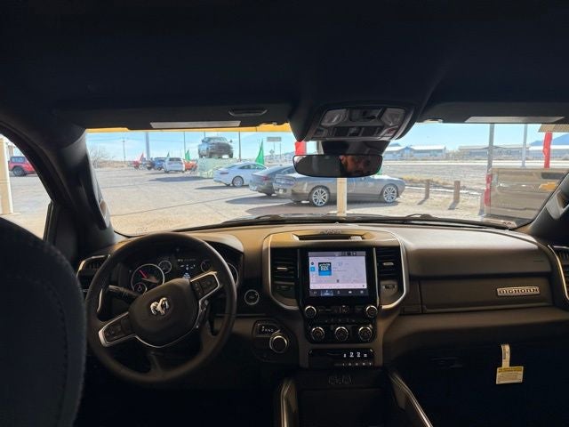 This Ram 1500 is equipped with the following features: Big Horn Level 1 Equipment Group (115V Auxiliary Power Outlet, 2nd Row in Floor Storage Bins, 3 Rear Seat Head Restraints, 4 Way Front Headrests, 400W Inverter, Auto Power-Folding Mirrors, Auto-Dimming Exterior Driver Mirror, Auto-Dimming Rear-View Mirror, Black Exterior Mirrors, Black Premium Power Mirrors, Body Color Fender Flares, Bucket Seats, Center Console Parts Module, Convex Wide-Angle Exterior Mirror Insert, Deluxe Cloth Bucket Seats, Exterior Mirrors Courtesy Lamps, Exterior Mirrors with Heating Element, Exterior Mirrors with Supplemental Signals, Front Seat Back Map Pockets, Full Length Floor Console, Glove Box Lamp, Heated Front Seats, Heated Steering Wheel, Leather Wrapped Steering Wheel, Manual Adjust 4-Way Front Passenger Seat, Power 2-Way Driver Lumbar Adjust, Power Adjust 8-Way Driver Seat, Power Adjustable Pedals, Rear 60/40 Folding Seat, Rear Center Armrest, Rear Dome with on/Off Switch Lamp, Rear Power Sliding Window, Rear Window Defroster, SiriusXM Radio Service, SiriusXM Satellite Radio, Steering Wheel Mounted Audio Controls, Sun Visors with Illuminated Vanity Mirrors, and Universal Garage Door Opener), Quick Order Package 23Z Big Horn, 3.21 Rear Axle Ratio, 4-Wheel Disc Brakes, 48V Belt Starter Generator, 4G LTE Wi-Fi Hot Spot, 6 Speakers, ABS brakes, Air Conditioning, Alloy wheels, AM/FM radio, Apple CarPlay, Apple CarPlay/Android Auto, Auto High-beam Headlights, Brake assist, Bumpers: chrome, Cloth Bucket Seats, Compass, Connectivity - US/Canada, Delay-off headlights, Driver door bin, Dual front impact airbags, Dual front side impact airbags, Electronic Stability Control, Exterior Parking Camera Rear, Front anti-roll bar, Front Bucket Seats, Front Center Armrest w/Storage, Front fog lights, Front reading lights, Front wheel independent suspension, Fully automatic headlights, Global Telematics Box Module, Google Android Auto, GPS Antenna Input, Heated door mirrors, Illuminated entry, Integrated Center Stack Radio, Integrated Voice Command with Bluetooth®, Low tire pressure warning, Manual Adjust 4-Way Driver Seat, Manual Folding Exterior Mirrors, Occupant sensing airbag, Outside temperature display, Overhead airbag, Overhead console, Panic alarm, Passenger door bin, Passenger vanity mirror, Power door mirrors, Power steering, Power windows, Radio data system, Radio: Uconnect 5 W with 8.4 Display, RAM Grille Badge - Chrome, Rear anti-roll bar, Rear step bumper, Remote keyless entry, Speed control, Supplier Part Tracking (J-1), Tachometer, Telescoping steering wheel, Tilt steering wheel, Traction control, Trip computer, USB Host Flip, Variably intermittent wipers, Voltmeter, and Wheels: 18 x 8 Cast-Aluminum Painted. Recent Arrival!