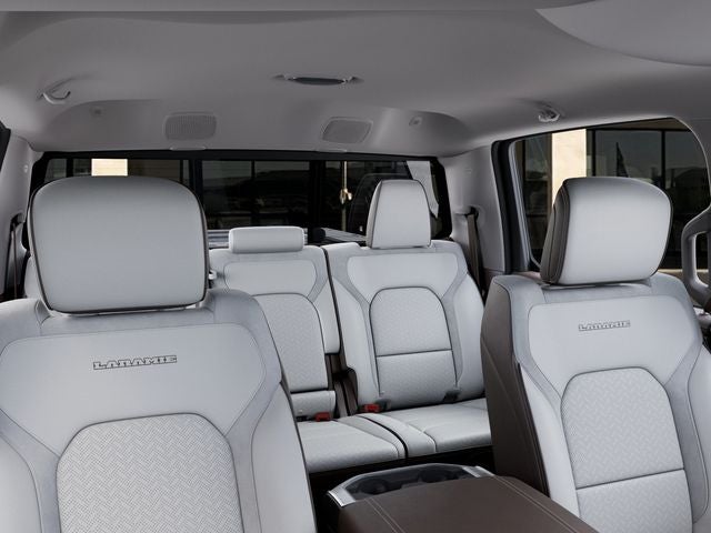 This Ram 1500 is equipped with the following features: Laramie Level 2 Equipment Group (14.4 Touchscreen Display, 4G LTE Wi-Fi Hot Spot, Cluster 12 TFT Color Display, Connected Travel and Traffic Services, Connectivity - US/Canada, Front Passenger Interactive Display, GPS Navigation, Harman/Kardon 19 Speaker Premium Sound, Integrated Center Stack Radio, Integrated Voice Command with Bluetooth®, Power Tailgate, Radio: Uconnect 5 Nav with 14.4 Display, Rain Sensitive Windshield Wipers, SiriusXM Radio Service, SiriusXM with 360L, and USB Host Flip), Quick Order Package 27H Laramie, 10 Speakers, 4-Wheel Disc Brakes, ABS brakes, Active Noise Control System, Adjustable pedals, Air Conditioning, Alloy wheels, AM/FM radio: SiriusXM with 360L, Apple CarPlay/Android Auto, Audio memory, Auto High-beam Headlights, Auto Power-Folding Mirrors, Auto-dimming door mirrors, Auto-Dimming Exterior Driver Mirror, Auto-dimming Rear-View mirror, Automatic temperature control, Brake assist, Bumpers: chrome, Chrome Exterior Mirrors, Compass, Convex Wide-Angle Exterior Mirror Insert, Delay-off headlights, Driver door bin, Driver vanity mirror, Dual front impact airbags, Dual front side impact airbags, Electronic Stability Control, Exterior 115V AC Outlet, Exterior Mirrors Courtesy Lamps, Exterior Mirrors with Heating Element, Exterior Mirrors with Memory, Exterior Mirrors with Supplemental Signals, Front anti-roll bar, Front Bucket Seats, Front Center Armrest w/Storage, Front dual zone A/C, Front fog lights, Front reading lights, Front wheel independent suspension, Fully automatic headlights, Garage door transmitter, Heated door mirrors, Heated front seats, Heated rear seats, Heated steering wheel, Illuminated entry, Leather steering wheel, Leather Trimmed Bucket Seats, Low tire pressure warning, Memory seat, Navigation System, Occupant sensing airbag, Off-Road Information Pages, Outside temperature display, Overhead airbag, Overhead console, Panic alarm, ParkView Rear Back-Up Camera, Passenger door bin, Passenger vanity mirror, Pedal memory, Power door mirrors, Power driver seat, Power passenger seat, Power steering, Power windows, Radio data system, Radio: Uconnect 5 Navigation with 12.0 Display, RAM Grille Badge - Chrome, RamBox Cargo Management System, Rear anti-roll bar, Rear reading lights, Rear seat center armrest, Rear step bumper, Remote keyless entry, Security system, Speed control, Split folding rear seat, Steering wheel mounted audio controls, Tachometer, Telescoping steering wheel, Tilt steering wheel, Traction control, Trailer Brake Control, Trip computer, Turn signal indicator mirrors, Variably intermittent wipers, Ventilated front seats, Voltmeter, and Wheels: 20 x 9 Premium Paint/Polish.