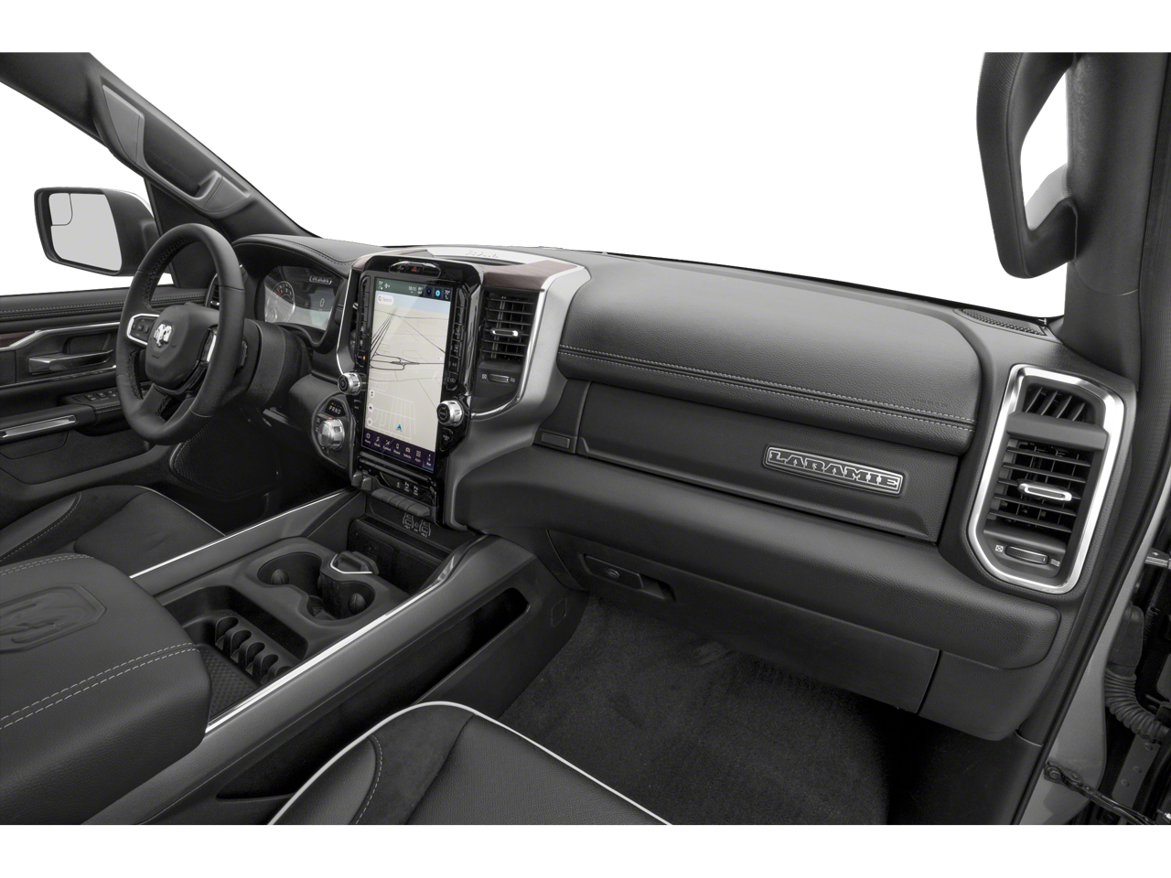 This Ram 1500 is equipped with the following features: Bed Utility Group (Exterior 115V AC Outlet, MOPAR 4 Adjustable Cargo Tie-Down Hooks, and MOPAR Spray in Bedliner), Laramie Level 1 Equipment Group (Rain Sensitive Windshield Wipers and Remote Tailgate Release), Night Edition (Accent Color Door Handles, Accent Color Premium Power Mirrors, Accent Color Tailgate Handle, Anti-Spin Differential Rear Axle, Auto Power-Folding Mirrors, Auto-Dimming Exterior Driver Mirror, Black Exterior Truck Badging, Black Headlamp Bezels, Black Interior Accents, Black Painted Exterior Mirrors Caps, Black Tail Lamp Bezels, Body Color Front Bumper, Body Color Rear Bumper with Step Pads, Convex Wide-Angle Exterior Mirror Insert, Dual Exhaust with Black Tips, Exterior Mirrors Approach Lamps, Exterior Mirrors Courtesy Lamps, Exterior Mirrors with Heating Element, Exterior Mirrors with Memory, Exterior Mirrors with Supplemental Signals, Grille Surround 3 Black Texture 2 Black, Pirelli Brand Tires, Proximity Approach/Departure Lamps, RAM Grille Badge - Black, Sport Performance Hood, and Wheels: 22 x 9 Forged Aluminum), Quick Order Package 27H Laramie, Trailer Tow Group (Trailer Brake Control, Trailer Reverse Steering Control, and Trailer Tire Pressure Monitoring System), 10 Speakers, 4-Wheel Disc Brakes, 4G LTE Wi-Fi Hot Spot, ABS brakes, Active Noise Control System, Air Conditioning, Alloy wheels, AM/FM radio: SiriusXM with 360L, Apple CarPlay/Android Auto, Audio memory, Auto High-beam Headlights, Auto-dimming door mirrors, Auto-Dimming Exterior Passenger Mirror, Auto-dimming Rear-View mirror, Automatic temperature control, Black Exterior Mirrors, Black Power-Fold Trailer Tow Mirrors, Brake assist, Bumpers: chrome, Chrome Exterior Mirrors, Compass, Connected Travel and Traffic Services, Connectivity - US/Canada, Delay-off headlights, Driver door bin, Driver vanity mirror, Dual front impact airbags, Dual front side impact airbags, Electronic Stability Control, Forward and Reverse Utility Lights, Front anti-roll bar, Front Bucket Seats, Front Center Armrest w/Storage, Front dual zone A/C, Front fog lights, Front reading lights, Front wheel independent suspension, Fully automatic headlights, Garage door transmitter, GPS Navigation, Heated door mirrors, Heated front seats, Heated rear seats, Heated steering wheel, Illuminated entry, Integrated Center Stack Radio, Integrated Voice Command with Bluetooth®, Leather steering wheel, Leather Trimmed Bucket Seats, Low tire pressure warning, Memory seat, Mirror Clearance/Running Lights, Multi-Function Tailgate, Navigation System, Occupant sensing airbag, Off-Road Information Pages, Outside temperature display, Overhead airbag, Overhead console, Panic alarm, ParkView Rear Back-Up Camera, Passenger door bin, Passenger vanity mirror, Power door mirrors, Power driver seat, Power passenger seat, Power steering, Power Telescoping Mirrors, Power windows, Power-Adjustable Convex Aux Mirrors, Radio data system, Radio: Uconnect 5 Navigation with 12.0 Display, RAM Grille Badge - Chrome, RAM's Head Badge, Rear anti-roll bar, Rear reading lights, Rear seat center armrest, Rear step bumper, Remote keyless entry, Security system, SiriusXM Radio Service, SiriusXM with 360L, Speed control, Split folding rear seat, Steering wheel mounted audio controls, Tachometer, Telescoping steering wheel, Tilt steering wheel, Traction control, Trailer Tow Mirrors, Trip computer, Turn signal indicator mirrors, USB Host Flip, Variably intermittent wipers, Ventilated front seats, Voltmeter, and Wheels: 20 x 9 Premium Paint/Polish. Recent Arrival!