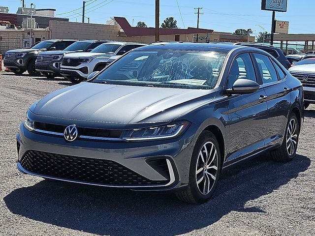 Platinum Gray Metallic 2026 Volkswagen Jetta 1.5T SE FWD 8-Speed Automatic with Tiptronic 1.5L I-4 DI DOHC Turbocharged Black Artificial Leather.
