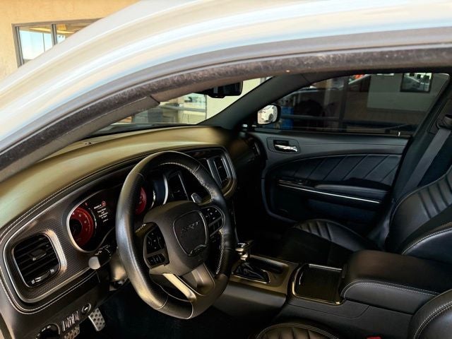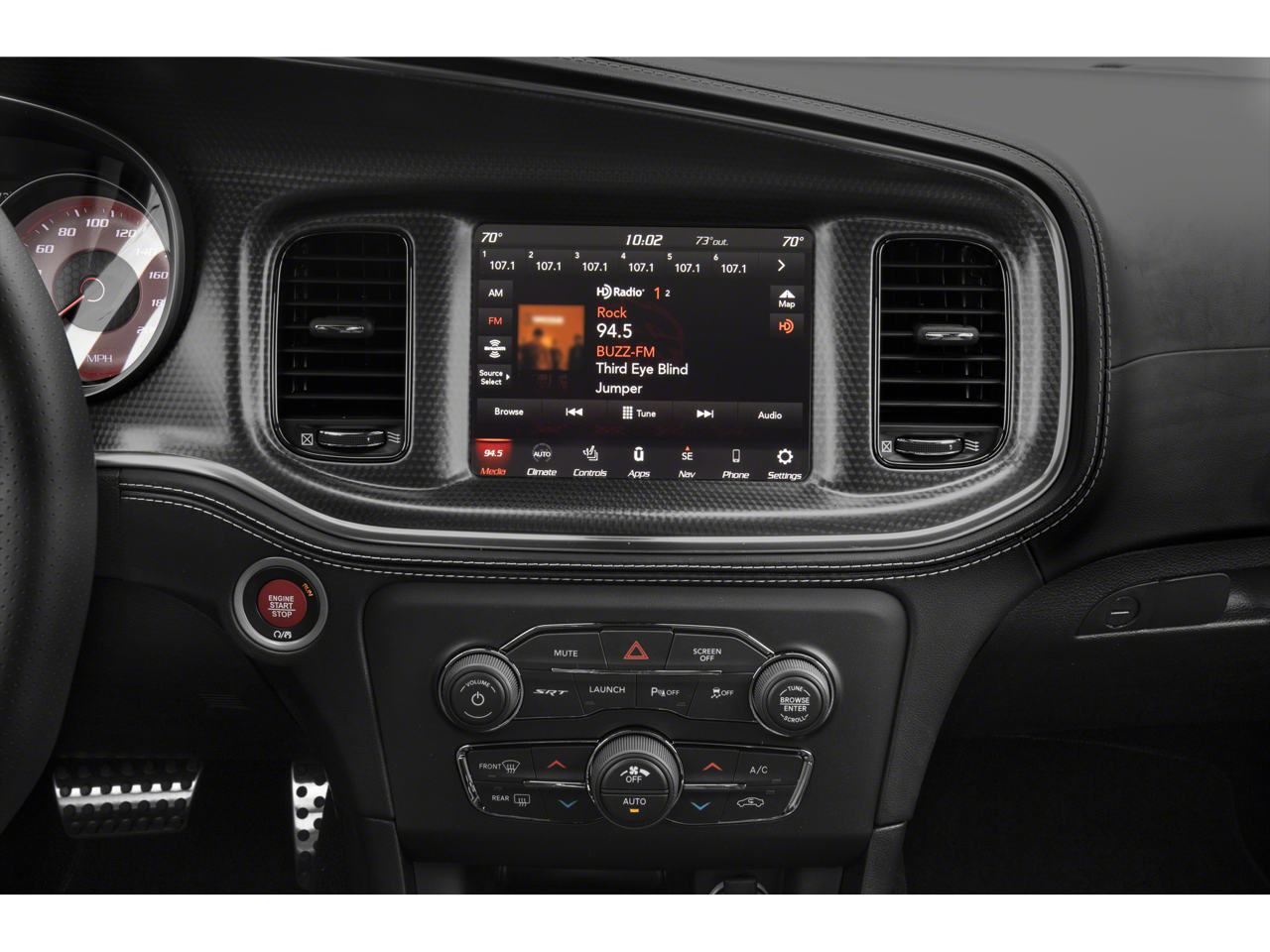 This Dodge Charger is equipped with the following features: Quick Order Package 23T SRT Hellcat, SRT Black Package (Black Charger Exhaust Tips, Satin Black Charger Decklid Badge, and Satin Black Dodge Tail Lamp Badge), Black Leather, 4-Wheel Disc Brakes, 6 Speakers, ABS brakes, Air Conditioning, Alloy wheels, AM/FM radio: SiriusXM, Anti-whiplash front head restraints, Apple CarPlay, Apple CarPlay/Android Auto, Audio memory, Auto-dimming door mirrors, Auto-dimming Rear-View mirror, Automatic temperature control, Brake assist, Bumpers: body-color, Compass, Delay-off headlights, Driver door bin, Driver vanity mirror, Dual front impact airbags, Dual front side impact airbags, Electronic Stability Control, Emergency communication system: SiriusXM Guardian, Four wheel independent suspension, Front anti-roll bar, Front Bucket Seats, Front Center Armrest, Front dual zone A/C, Front License Plate Bracket, Front reading lights, Fully automatic headlights, Garage door transmitter: HomeLink, Google Android Auto, GPS Antenna Input, Heated door mirrors, Heated Front Seats, Heated front seats, Heated rear seats, Heated steering wheel, Hellcat Logo Laguna Leather Seat, High intensity discharge headlights: Bi-Xenon, Illuminated entry, Integrated Center Stack Radio, Integrated Voice Command w/Bluetooth®, Knee airbag, Leather Shift Knob, Low tire pressure warning, Media Hub (2 USB, AUX), Memory seat, Occupant sensing airbag, Outside temperature display, Overhead airbag, Overhead console, Panic alarm, ParkView Rear Back-Up Camera, Passenger door bin, Passenger vanity mirror, Power door mirrors, Power driver seat, Power passenger seat, Power steering, Power windows, Radio: Uconnect 4C w/8.4 Display, Rear anti-roll bar, Rear reading lights, Rear window defroster, Remote keyless entry, Security system, SiriusXM Satellite Radio, Speed control, Speed-Sensitive Wipers, Split folding rear seat, Spoiler, Sport steering wheel, Steering wheel mounted audio controls, Tachometer, Telescoping steering wheel, Tilt steering wheel, Traction control, Trip computer, USB Host Flip, Variably intermittent wipers, Ventilated front seats, and Wheels: 20 x 11 Carbon Black Aluminum. Odometer is 14814 miles below market average!