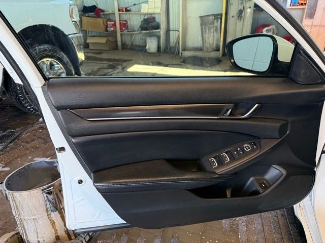This Honda Accord is equipped with the following features: Exl Cloth, 4-Wheel Disc Brakes, 8 Speakers, ABS brakes, Air Conditioning, Alloy wheels, AM/FM radio, Apple CarPlay/Android Auto, Auto High-beam Headlights, Automatic temperature control, Brake assist, Bumpers: body-color, Cloth Seat Trim, Delay-off headlights, Driver door bin, Driver vanity mirror, Dual front impact airbags, Dual front side impact airbags, Electronic Stability Control, Emergency communication system: HondaLink, Exterior Parking Camera Rear, Four wheel independent suspension, Front anti-roll bar, Front Bucket Seats, Front Center Armrest, Front dual zone A/C, Front fog lights, Front reading lights, Fully automatic headlights, Illuminated entry, Knee airbag, Leather Shift Knob, Leather steering wheel, Low tire pressure warning, Occupant sensing airbag, Outside temperature display, Overhead airbag, Overhead console, Panic alarm, Passenger door bin, Passenger vanity mirror, Power door mirrors, Power driver seat, Power steering, Power windows, Radio data system, Radio: 180-Watt AM/FM Audio System, Rear anti-roll bar, Rear seat center armrest, Rear window defroster, Remote keyless entry, Security system, Speed control, Speed-sensing steering, Speed-Sensitive Wipers, Split folding rear seat, Spoiler, Steering wheel mounted audio controls, Tachometer, Telescoping steering wheel, Tilt steering wheel, Traction control, Trip computer, Variably intermittent wipers, and Wheels: 19 Machine-Finished Alloy w/Black Inserts. Recent Arrival! Odometer is 3486 miles below market average! 29/35 City/Highway MPG