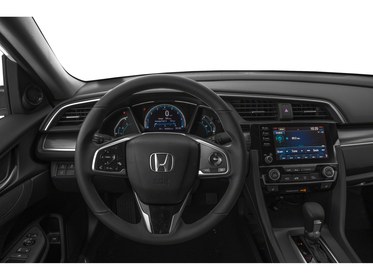 This Honda Civic is equipped with the following features: Cloth, 17 Alloy Wheels, 4-Wheel Disc Brakes, 8 Speakers, ABS brakes, Air Conditioning, Alloy wheels, AM/FM radio: XM, Apple CarPlay/Android Auto, Auto High-beam Headlights, Automatic temperature control, Brake assist, Bumpers: body-color, Cloth Seat Trim, Delay-off headlights, Driver door bin, Driver vanity mirror, Dual front impact airbags, Dual front side impact airbags, Electronic Stability Control, Emergency communication system: HondaLink, Exterior Parking Camera Rear, Forward collision: Collision Mitigation Braking System (CMBS) + FCW mitigation, Four wheel independent suspension, Front anti-roll bar, Front Bucket Seats, Front Center Armrest, Front dual zone A/C, Front fog lights, Front reading lights, Fully automatic headlights, Heated door mirrors, Heated Front Bucket Seats, Heated front seats, Illuminated entry, Lane departure: Lane Keeping Assist System (LKAS) active, Leather Shift Knob, Low tire pressure warning, Occupant sensing airbag, Outside temperature display, Overhead airbag, Overhead console, Panic alarm, Passenger door bin, Passenger vanity mirror, Power door mirrors, Power driver seat, Power moonroof, Power steering, Power windows, Radio data system, Radio: 180-Watt AM/FM/HD/SiriusXM Audio System, Rear anti-roll bar, Rear seat center armrest, Rear window defroster, Remote keyless entry, Security system, Speed control, Speed-sensing steering, Speed-Sensitive Wipers, Split folding rear seat, Spoiler, Steering wheel mounted audio controls, Tachometer, Telescoping steering wheel, Tilt steering wheel, Traction control, Trip computer, and Variably intermittent wipers. Recent Arrival! 32/42 City/Highway MPG
