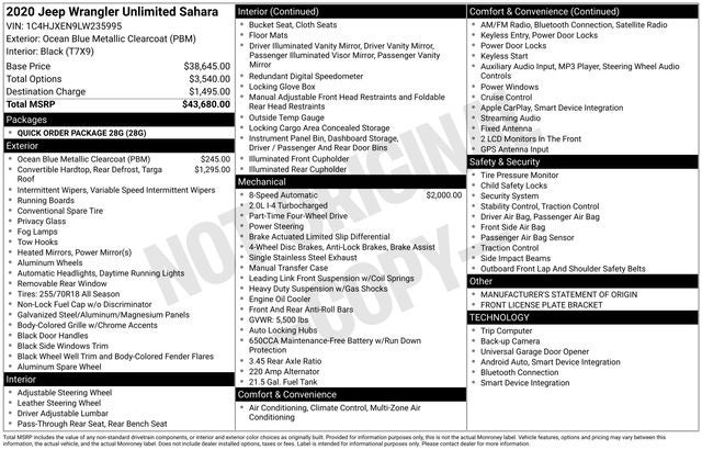 Ocean Blue Metallic Clearcoat 2020 Jeep Wrangler Unlimited Sahara 4WD 8-Speed Automatic 2.0L I4 DOHC