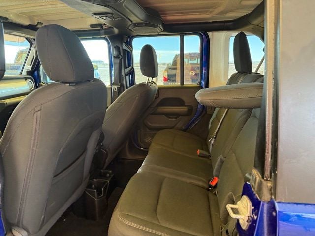 This Jeep Wrangler is equipped with the following features: Quick Order Package 28G, 1-Year SiriusXM Radio Service, 3.45 Rear Axle Ratio, 4-Wheel Disc Brakes, 8 Speakers, ABS brakes, Air Conditioning, Alloy wheels, AM/FM radio: SiriusXM, Apple CarPlay, Apple CarPlay/Android Auto, Automatic temperature control, Aux Battery, Black 3-Piece Hard Top, Brake assist, Cloth Low-Back Bucket Seats, Compass, Delay-off headlights, Driver door bin, Driver vanity mirror, Dual front impact airbags, Dual front side impact airbags, Electronic Stability Control, Freedom Panel Storage Bag, Front anti-roll bar, Front Bucket Seats, Front Center Armrest w/Storage, Front dual zone A/C, Front fog lights, Front License Plate Bracket, Front reading lights, Fully automatic headlights, Garage door transmitter, Google Android Auto, GPS Antenna Input, Heated door mirrors, Heavy Duty Suspension w/Gas Shocks, Illuminated entry, Integrated roll-over protection, Integrated Voice Command w/Bluetooth®, Leather steering wheel, Low tire pressure warning, Manufacturer's Statement of Origin, No Soft Top, Non-Lock Fuel Cap w/o Discriminator, Occupant sensing airbag, Outside temperature display, Panic alarm, ParkView Rear Back-Up Camera, Passenger door bin, Passenger vanity mirror, Power door mirrors, Power steering, Power windows, Radio data system, Radio: Uconnect 4 w/7 Display, Rear anti-roll bar, Rear reading lights, Rear Window Defroster, Rear Window Wiper/Washer, Remote keyless entry, Security system, Speed control, Split folding rear seat, Steering wheel mounted audio controls, Stop-Start Dual Battery System, Tachometer, Telescoping steering wheel, Tilt steering wheel, Traction control, Trip computer, Variably intermittent wipers, Voltmeter, and Wheels: 18 x 7.5 Polished w/Gray Spokes.
