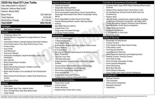 Inferno Red 2020 Kia Soul GT-Line Turbo FWD 7-Speed Automatic 1.6L I4 DGI Turbocharged DOHC 16V LEV3-ULEV70 201hp