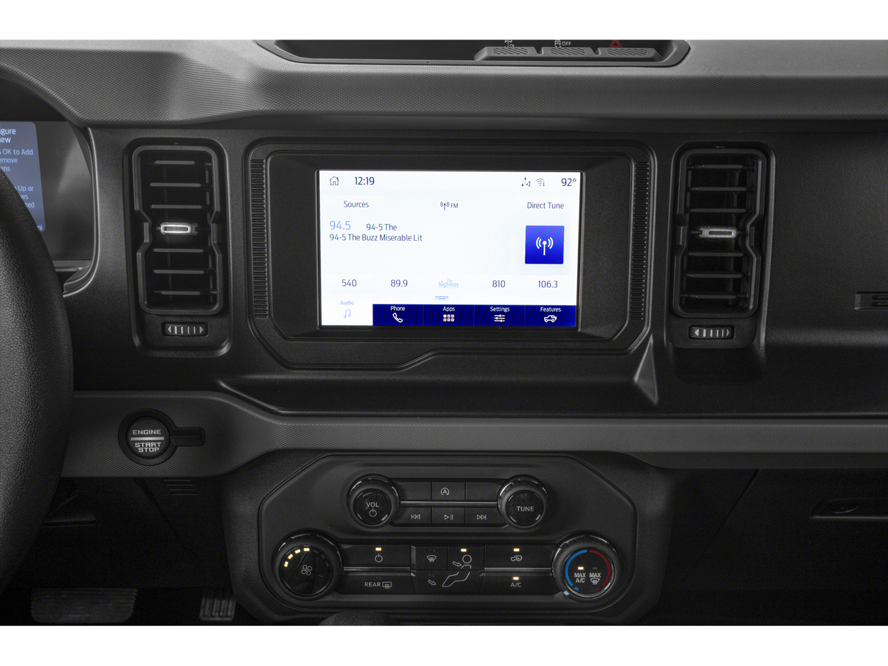This Ford Bronco is equipped with the following features: 4-Wheel Disc Brakes, 6 Speakers, ABS brakes, Air Conditioning, AM/FM radio: SiriusXM with 360L, AM/FM Stereo, Auto High-beam Headlights, Brake assist, Brush Guard, Carbonized Gray Molded-In-Color Hard Top, Cargo Area Protector, Compass, Delay-off headlights, Driver door bin, Driver vanity mirror, Dual front impact airbags, Dual front side impact airbags, Electronic Stability Control, Emergency communication system: 911 Assist, Exterior Parking Camera Rear, Ford Performance Heavy-Duty Modular Front Bumper, Front & Rear Floor Liners, Front anti-roll bar, Front Bucket Seats, Front Center Armrest, Front License Plate Bracket, Front reading lights, Front Row Top Panels Storage Bag, Front wheel independent suspension, Fully automatic headlights, Hard Top Sound Deadening Headliner, Heated door mirrors, Illuminated entry, Integrated roll-over protection, Low tire pressure warning, Occupant sensing airbag, Outside temperature display, Overhead airbag, Overhead console, Panic alarm, Passenger door bin, Passenger vanity mirror, Power door mirrors, Power steering, Power windows, Radio data system, Rear-Window Defroster & Washer, Remote keyless entry, Security system, SiriusXM Radio w/360L, Speed control, Split folding rear seat, Steering wheel mounted audio controls, SYNC 4, Tachometer, Telescoping steering wheel, Tilt steering wheel, Traction control, Trip computer, and Variably intermittent wipers. Recent Arrival!