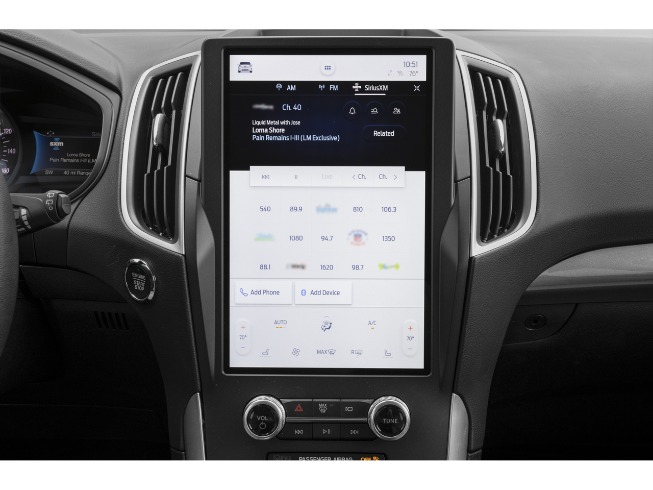 This Ford Edge is equipped with the following features: AWD, 3.80 Axle Ratio, 4-Wheel Disc Brakes, 6 Speakers, ABS brakes, ActiveX Seating Material Heated Bucket Seats, Air Conditioning, Alloy wheels, AM/FM radio: SiriusXM with 360L, Auto High-beam Headlights, Auto-dimming Rear-View mirror, Automatic temperature control, Brake assist, Bumpers: body-color, Compass, Delay-off headlights, Driver door bin, Driver vanity mirror, Dual front impact airbags, Dual front side impact airbags, Electronic Stability Control, Emergency communication system: SYNC 4 911 Assist, FordPass Connect, Four wheel independent suspension, Front anti-roll bar, Front Bucket Seats, Front Center Armrest w/Storage, Front dual zone A/C, Front reading lights, Fully automatic headlights, Heated door mirrors, Heated front seats, Illuminated entry, Knee airbag, Leather steering wheel, Low tire pressure warning, Occupant sensing airbag, Outside temperature display, Overhead airbag, Overhead console, Panic alarm, Passenger door bin, Passenger vanity mirror, Power door mirrors, Power driver seat, Power Liftgate, Power passenger seat, Power steering, Power windows, Radio: AM/FM Stereo/MP3 Capable, Rear anti-roll bar, Rear Parking Sensors, Rear reading lights, Rear seat center armrest, Rear window defroster, Rear window wiper, Remote keyless entry, SiriusXM w/360L, Speed control, Speed-Sensitive Wipers, Split folding rear seat, Spoiler, Steering wheel mounted audio controls, SYNC 4A w/Enhanced Voice Recognition, Tachometer, Telescoping steering wheel, Tilt steering wheel, Traction control, Trip computer, and Variably intermittent wipers. Recent Arrival! 21/28 City/Highway MPG