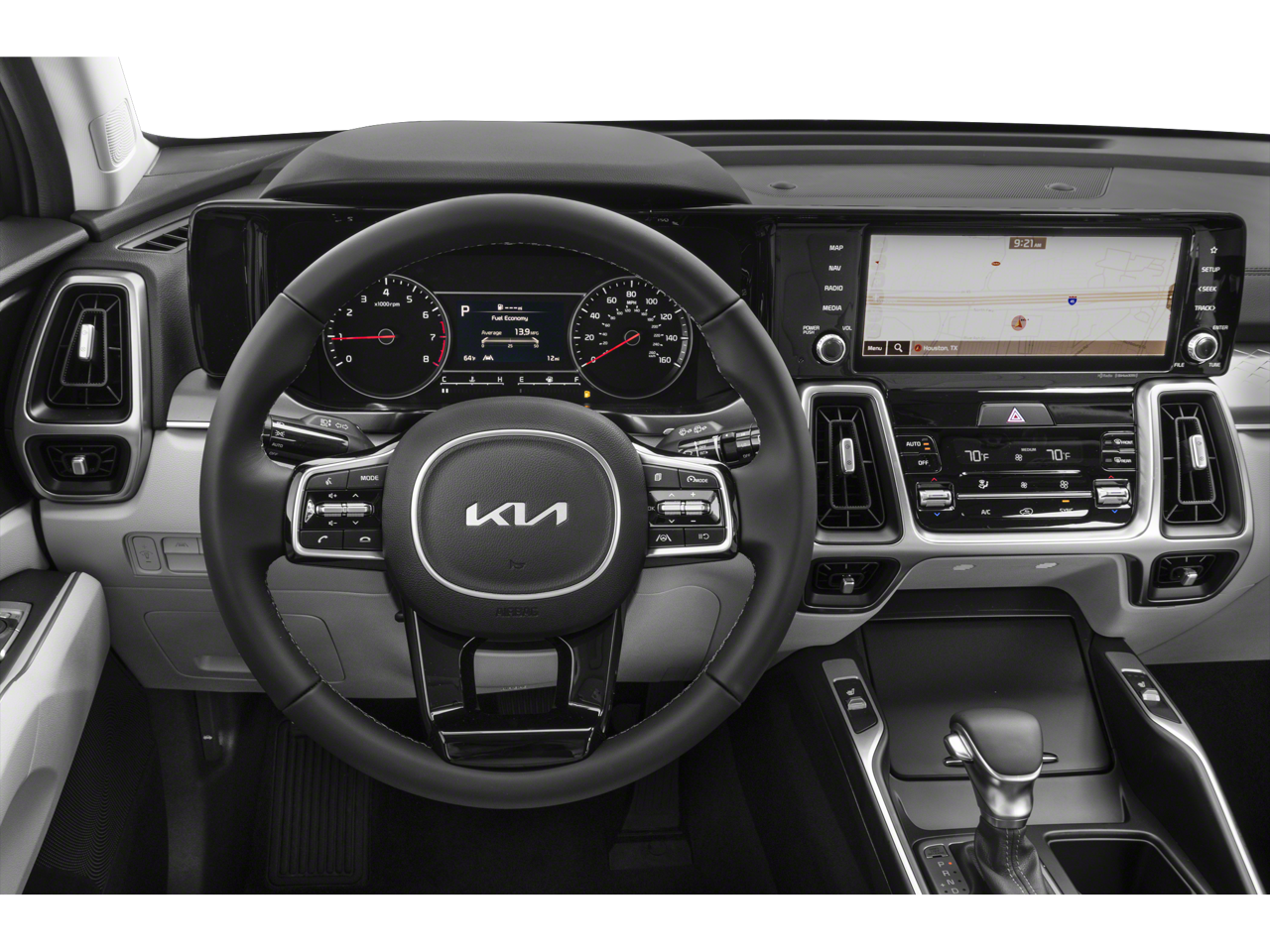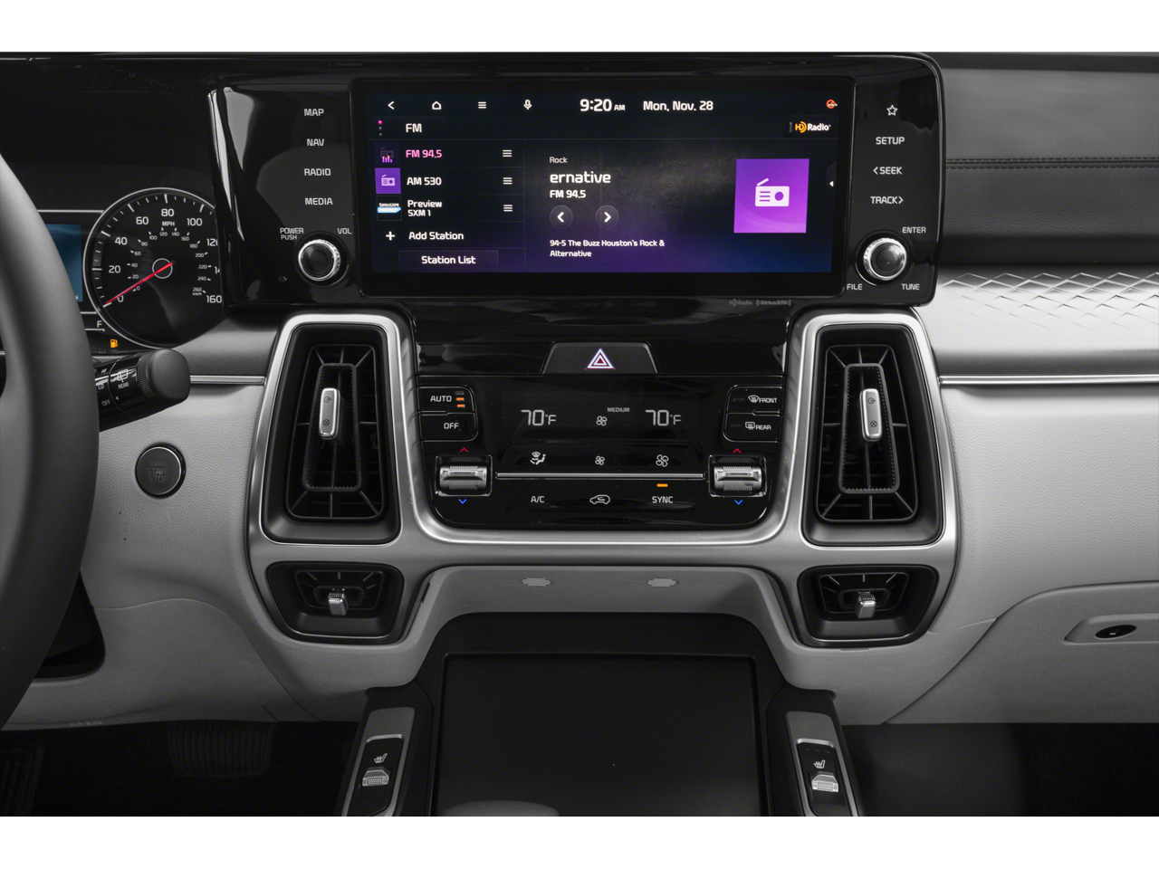 This Kia Sorento is equipped with the following features: Panoramic Sunroof Package (LED Interior Lighting and Panoramic Power Sunroof w/Power Sunshade), 3.798 Axle Ratio, 3rd row seats: split-bench, 4-Wheel Disc Brakes, 6 Speakers, ABS brakes, Air Conditioning, Alloy wheels, AM/FM radio: SiriusXM, Apple CarPlay & Android Auto, Auto High-beam Headlights, Automatic temperature control, Brake assist, Bumpers: body-color, Carpet Floor Mats, Delay-off headlights, Driver door bin, Driver vanity mirror, Dual front impact airbags, Dual front side impact airbags, Electronic Stability Control, Emergency communication system, Exterior Parking Camera Rear, Four wheel independent suspension, Front anti-roll bar, Front Bucket Seats, Front Center Armrest, Front dual zone A/C, Front reading lights, Fully automatic headlights, Heated door mirrors, Heated Front Bucket Seats, Heated front seats, Illuminated entry, Knee airbag, Leather Shift Knob, Leather steering wheel, Low tire pressure warning, Navigation System, Occupant sensing airbag, Outside temperature display, Overhead airbag, Overhead console, Panic alarm, Passenger door bin, Passenger vanity mirror, Power door mirrors, Power driver seat, Power steering, Power windows, Radio data system, Radio: AM/FM Audio System, Rear air conditioning, Rear anti-roll bar, Rear reading lights, Rear seat center armrest, Rear window defroster, Rear window wiper, Remote keyless entry, Roof rack: rails only, Security system, Smart Key w/ Push Button and Remote Start, Speed control, Speed-sensing steering, Split folding rear seat, Spoiler, Steering wheel mounted audio controls, SynTex Artificial Leather Seat Trim, Tachometer, Telescoping steering wheel, Tilt steering wheel, Traction control, Trip computer, Turn signal indicator mirrors, Variably intermittent wipers, and Wheels: 7.5J x 18 Machine-Finished Alloy. Recent Arrival! 24/29 City/Highway MPG