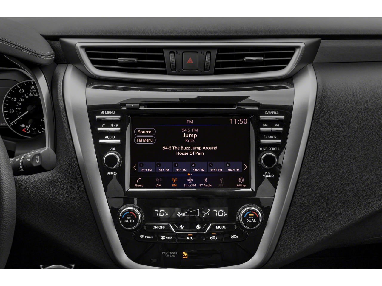 This Nissan Murano is equipped with the following features: CVT with Xtronic, 4-Wheel Disc Brakes, 4.667 Axle Ratio, 6 Speakers, ABS brakes, Air Conditioning, Alloy wheels, AM/FM radio: SiriusXM, AM/FM/CD/MP3/WMA Audio System, Auto High-beam Headlights, Auto-dimming Rear-View mirror, Automatic temperature control, Blind Spot Warning, Brake assist, Bumpers: body-color, Carpeted Floor Mats & Carpeted Cargo Mat, CD player, Child-Seat-Sensing Airbag, Delay-off headlights, Driver door bin, Driver vanity mirror, Dual front impact airbags, Dual front side impact airbags, Electronic Stability Control, Four wheel independent suspension, Front anti-roll bar, Front Bucket Seats, Front Center Armrest, Front dual zone A/C, Front fog lights, Front reading lights, Fully automatic headlights, Heated door mirrors, Heated Front Bucket Seats, Heated front seats, Illuminated entry, Knee airbag, Leatherette-Appointed Seat Trim, Low tire pressure warning, NissanConnect featuring Apple CarPlay and Android Auto, Occupant sensing airbag, Outside temperature display, Overhead airbag, Overhead console, Panic alarm, Passenger door bin, Passenger vanity mirror, Power door mirrors, Power driver seat, Power passenger seat, Power steering, Power windows, Radio data system, Rear anti-roll bar, Rear reading lights, Rear seat center armrest, Rear side impact airbag, Rear window defroster, Rear window wiper, Remote keyless entry, Security system, Speed control, Speed-sensing steering, Speed-Sensitive Wipers, Split folding rear seat, Spoiler, Steering wheel mounted audio controls, Tachometer, Telescoping steering wheel, Tilt steering wheel, Traction control, Trip computer, Turn signal indicator mirrors, Variably intermittent wipers, and Wheels: 18 Machined Aluminum-Alloy. 20/28 City/Highway MPG