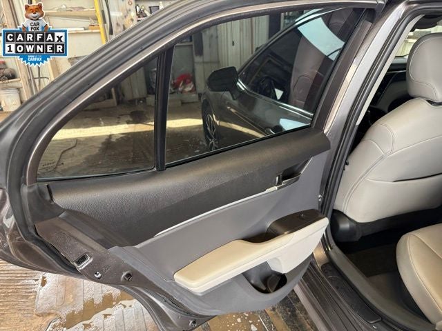 This Toyota Camry Hybrid is equipped with the following features: 2.5L I4 DOHC 16V, 4-Wheel Disc Brakes, 6 Speakers, ABS brakes, Air Conditioning, Alloy wheels, AM/FM radio: SiriusXM, Apple CarPlay/Android Auto, Auto High-beam Headlights, Automatic temperature control, Brake assist, Bumpers: body-color, Delay-off headlights, Driver door bin, Driver vanity mirror, Dual front impact airbags, Dual front side impact airbags, Electronic Stability Control, Emergency communication system: Safety Connect (1-year trial), Exterior Parking Camera Rear, Four wheel independent suspension, Front anti-roll bar, Front Bucket Seats, Front Center Armrest, Front dual zone A/C, Front reading lights, Fully automatic headlights, Heated door mirrors, Illuminated entry, Knee airbag, Leather steering wheel, Low tire pressure warning, Occupant sensing airbag, Outside temperature display, Overhead airbag, Overhead console, Panic alarm, Passenger door bin, Passenger vanity mirror, Power door mirrors, Power driver seat, Power steering, Power windows, Radio data system, Radio: Audio, Rear anti-roll bar, Rear reading lights, Rear seat center armrest, Rear side impact airbag, Rear window defroster, Remote keyless entry, Security system, Speed control, Speed-sensing steering, Split folding rear seat, Spoiler, Sport SofTex Seat Trim w/Fabric Inserts, Steering wheel mounted audio controls, Telescoping steering wheel, Tilt steering wheel, Traction control, Trip computer, Turn signal indicator mirrors, Variably intermittent wipers, and Wheels: 8.5J x 19 Alloy. Odometer is 13841 miles below market average! 44/47 City/Highway MPG