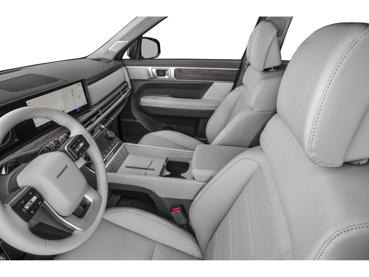 This Hyundai Santa Fe is equipped with the following features: Option Group 01, Black Leather, 12 Speakers, 3rd row seats: bench, 4-Wheel Disc Brakes, ABS brakes, Air Conditioning, Alloy wheels, AM/FM radio: SiriusXM, Apple CarPlay & Android Auto, Auto High-beam Headlights, Auto-dimming Rear-View mirror, Automatic temperature control, Axle Ratio: 3.316, Brake assist, Bumpers: body-color, Carpeted Floor Mats, Delay-off headlights, Driver door bin, Driver vanity mirror, Dual front impact airbags, Dual front side impact airbags, Electronic Stability Control, Emergency communication system, Exterior Parking Camera Rear, Four wheel independent suspension, Front anti-roll bar, Front Bucket Seats, Front Center Armrest, Front dual zone A/C, Front reading lights, Fully automatic headlights, Garage door transmitter: HomeLink, Heated & Ventilated Front Bucket Seats, Heated door mirrors, Heated front seats, Heated rear seats, Heated steering wheel, Illuminated entry, Knee airbag, Leather Seat Trim, Leather steering wheel, Low tire pressure warning, Memory seat, Navigation System, Occupant sensing airbag, Outside temperature display, Overhead airbag, Overhead console, Panic alarm, Passenger door bin, Passenger vanity mirror, Power door mirrors, Power driver seat, Power Liftgate, Power moonroof, Power passenger seat, Power steering, Power windows, Radio: AM/FM/HD Bose Premium Audio System, Rain sensing wipers, Rear anti-roll bar, Rear seat center armrest, Rear side impact airbag, Rear window defroster, Rear window wiper, Remote keyless entry, Security system, Speed control, Speed-sensing steering, Split folding rear seat, Spoiler, Steering wheel mounted audio controls, Tachometer, Telescoping steering wheel, Tilt steering wheel, Traction control, Trip computer, Turn signal indicator mirrors, Variably intermittent wipers, Ventilated front seats, Wheel Locks, and Wheels: 20 x 8.5J Alloy. Recent Arrival! 20/29 City/Highway MPG