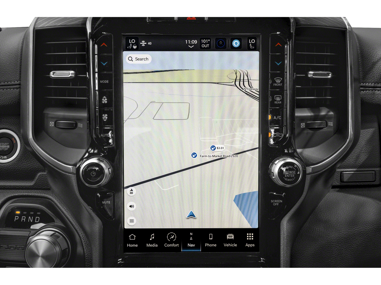 This Ram 1500 is equipped with the following features: Quick Order Package 27H Laramie, 10 Speakers, 3 Rear Seat Head Restraints, 3.21 Rear Axle Ratio, 4 Way Front Headrests, 4-Wheel Disc Brakes, 48V Belt Starter Generator, 4G LTE Wi-Fi Hot Spot, ABS brakes, Air Conditioning, Alloy wheels, AM/FM radio: SiriusXM with 360L, Apple CarPlay, Apple CarPlay/Android Auto, Audio memory, Auto-dimming door mirrors, Auto-Dimming Exterior Driver Mirror, Auto-dimming Rear-View mirror, Automatic temperature control, Brake assist, Bumpers: chrome, Chrome Exterior Mirrors, Compass, Connected Travel & Traffic Services, Connectivity - US/Canada, Convex Wide-Angle Exterior Mirror Insert, Delay-off headlights, Driver door bin, Driver Seat Memory, Driver vanity mirror, Dual front impact airbags, Dual front side impact airbags, Electronic Stability Control, Exterior Mirrors Courtesy Lamps, Exterior Mirrors w/Heating Element, Exterior Mirrors w/Memory, Exterior Mirrors w/Supplemental Signals, Exterior Parking Camera Rear, For Details, Visit DriveUconnect.com, For More Info, Call 800-643-2112, Front anti-roll bar, Front Center Armrest w/Storage, Front dual zone A/C, Front fog lights, Front License Plate Bracket, Front reading lights, Front Seat Back Map Pockets, Front wheel independent suspension, Fully automatic headlights, Garage door transmitter, Global Telematics Box Module (TBM), Google Android Auto, GPS Navigation, HD Radio, Heated door mirrors, Heated Front Seats, Heated front seats, Heated Steering Wheel, Heated steering wheel, Illuminated entry, Integrated Voice Command w/Bluetooth®, Leather steering wheel, Leather Trim 40/20/40 Bench Seat, Low tire pressure warning, Manufacturer's Statement of Origin, Memory seat, Navigation System, Occupant sensing airbag, Outside temperature display, Overhead airbag, Overhead console, Panic alarm, Passenger door bin, Passenger vanity mirror, Power 2-Way Driver Lumbar Adjust, Power 2-Way Passenger Lumbar Adjust, Power 8-Way Driver & Passenger Seats, Power door mirrors, Power driver seat, Power passenger seat, Power steering, Power windows, Power-Folding Mirrors, Radio data system, Radio: Uconnect 5 Nav w/8.4 Display, RAM Grille Badge - Chrome, Rear 60/40 Folding Seat, Rear anti-roll bar, Rear seat center armrest, Rear step bumper, Remote keyless entry, Security system, SiriusXM Radio Service, SiriusXM w/360L, Speed control, Split folding rear seat, Steering wheel mounted audio controls, Tachometer, Telescoping steering wheel, Tilt steering wheel, Traction control, Trip computer, Turn signal indicator mirrors, Variably intermittent wipers, Ventilated Front Seats, Ventilated front seats, Voltmeter, and Wheels: 18 x 8 Aluminum Base PainteD. Recent Arrival!